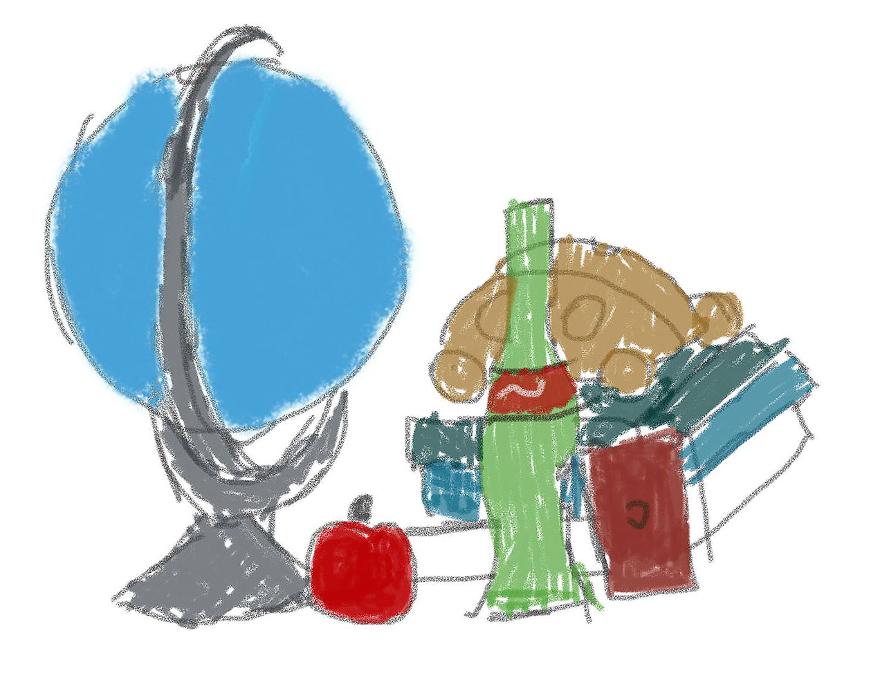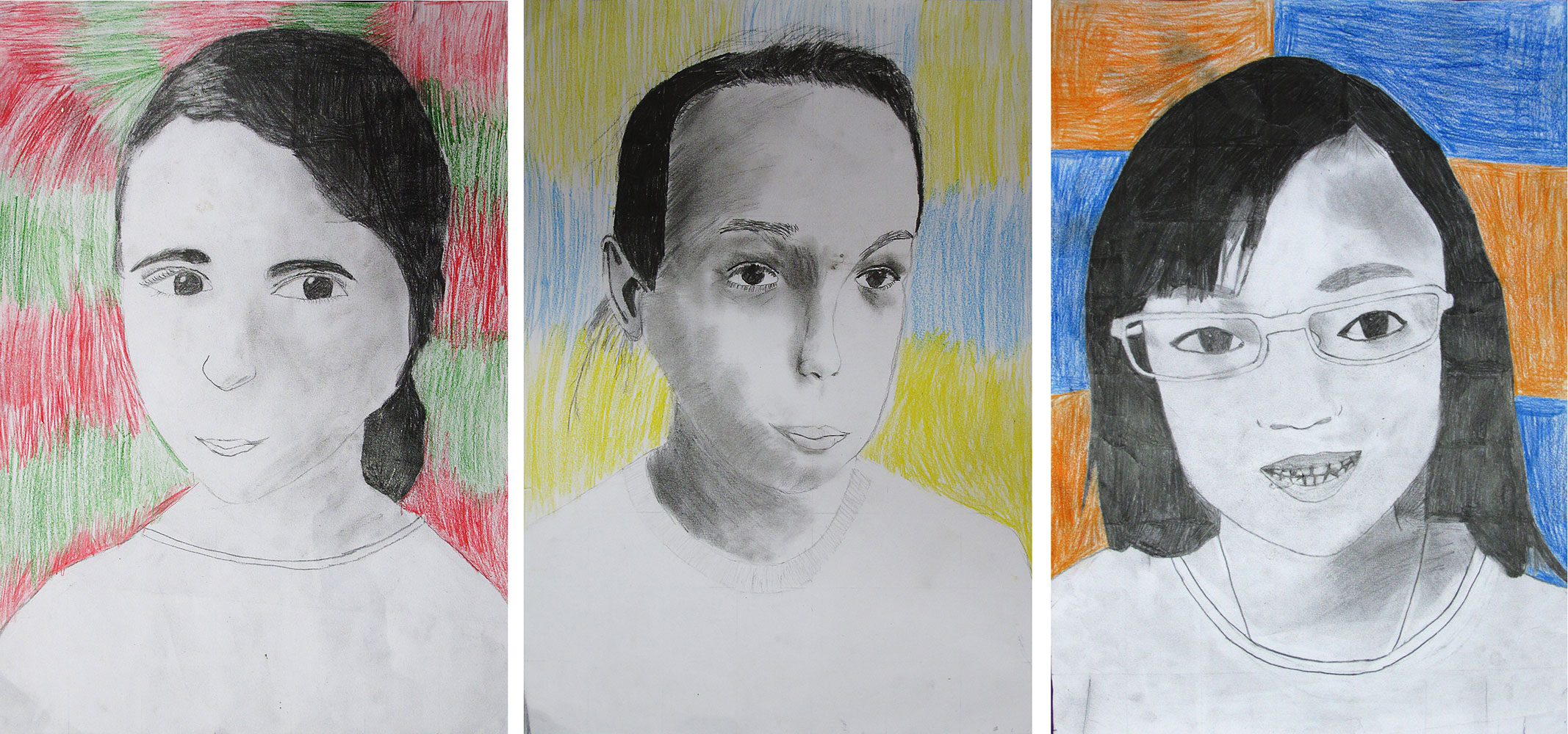 A fourth grade student draws an in-classroom still-life on the Ipad.