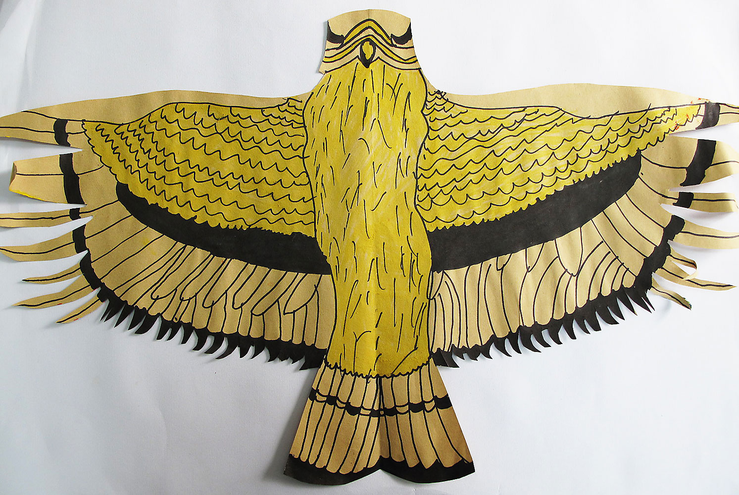 A third grade student uses an image of an eagle in order to design a Chinese-style kite.