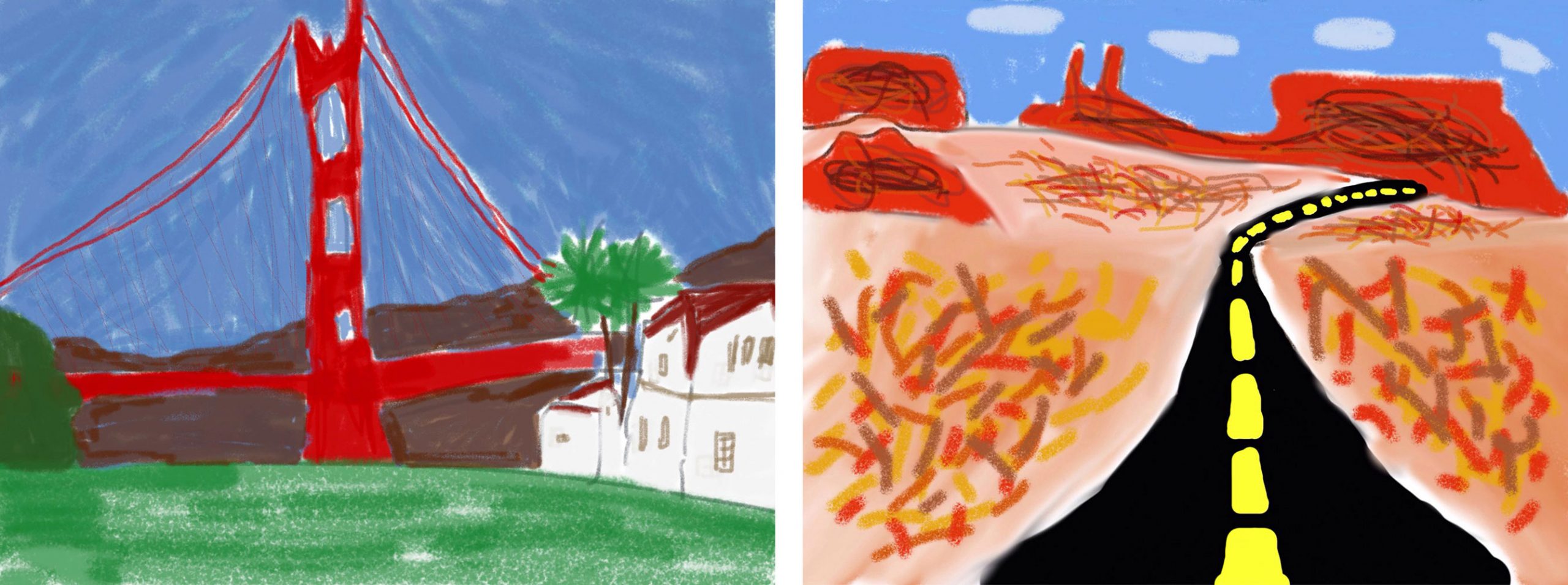 Two fourth grade students use photographs from the Internet in order to draw landscapes on the iPad.