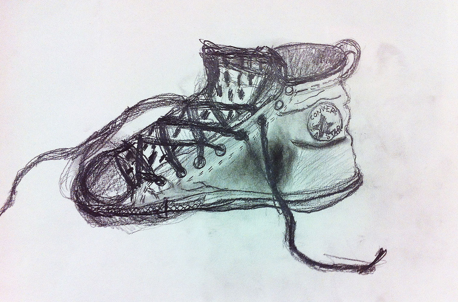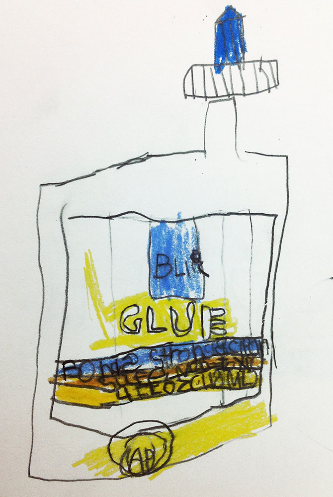 A fourth grade student makes a drawing of a Kit-Kat bar, one of his favorite candies.